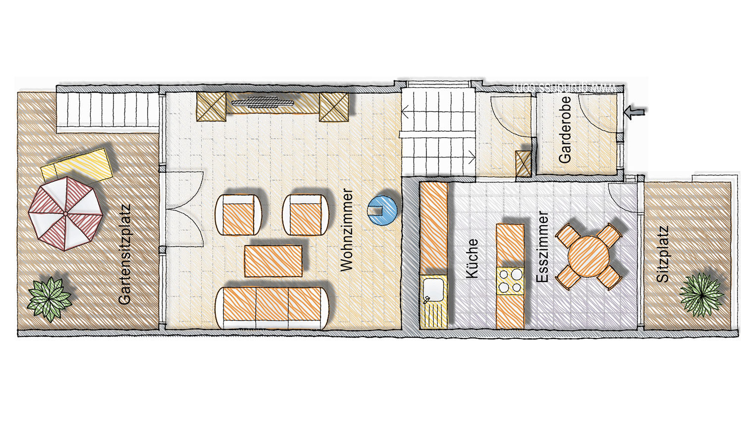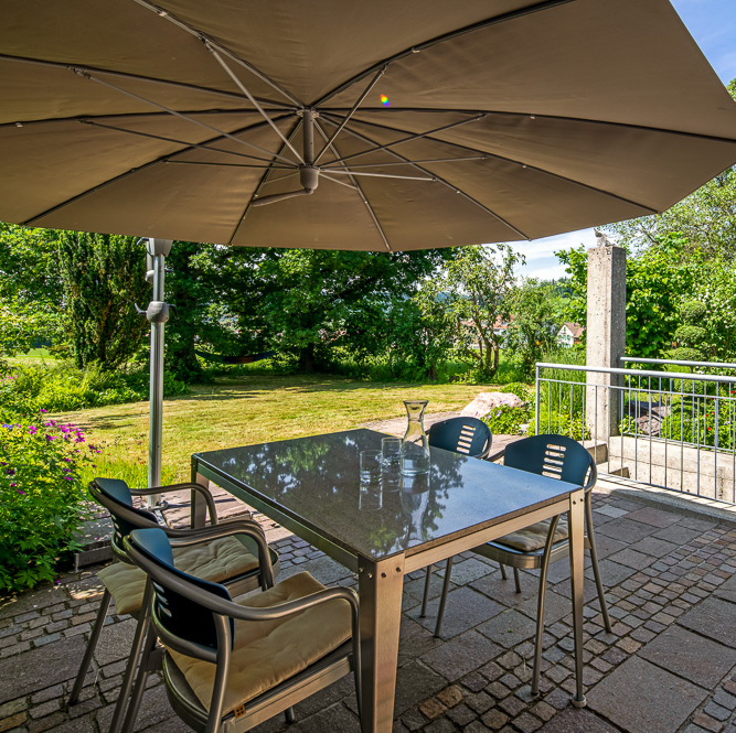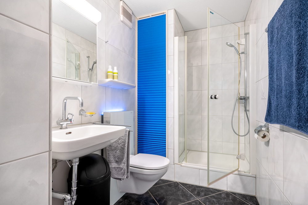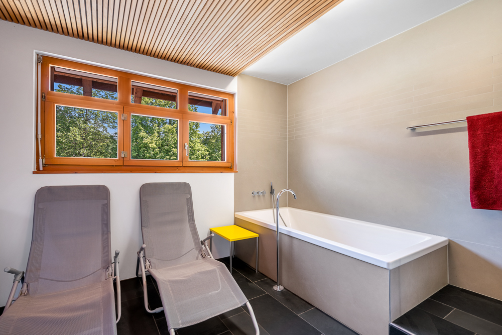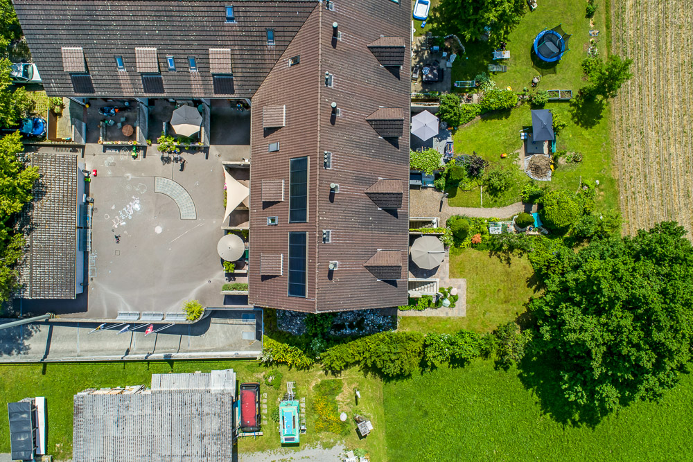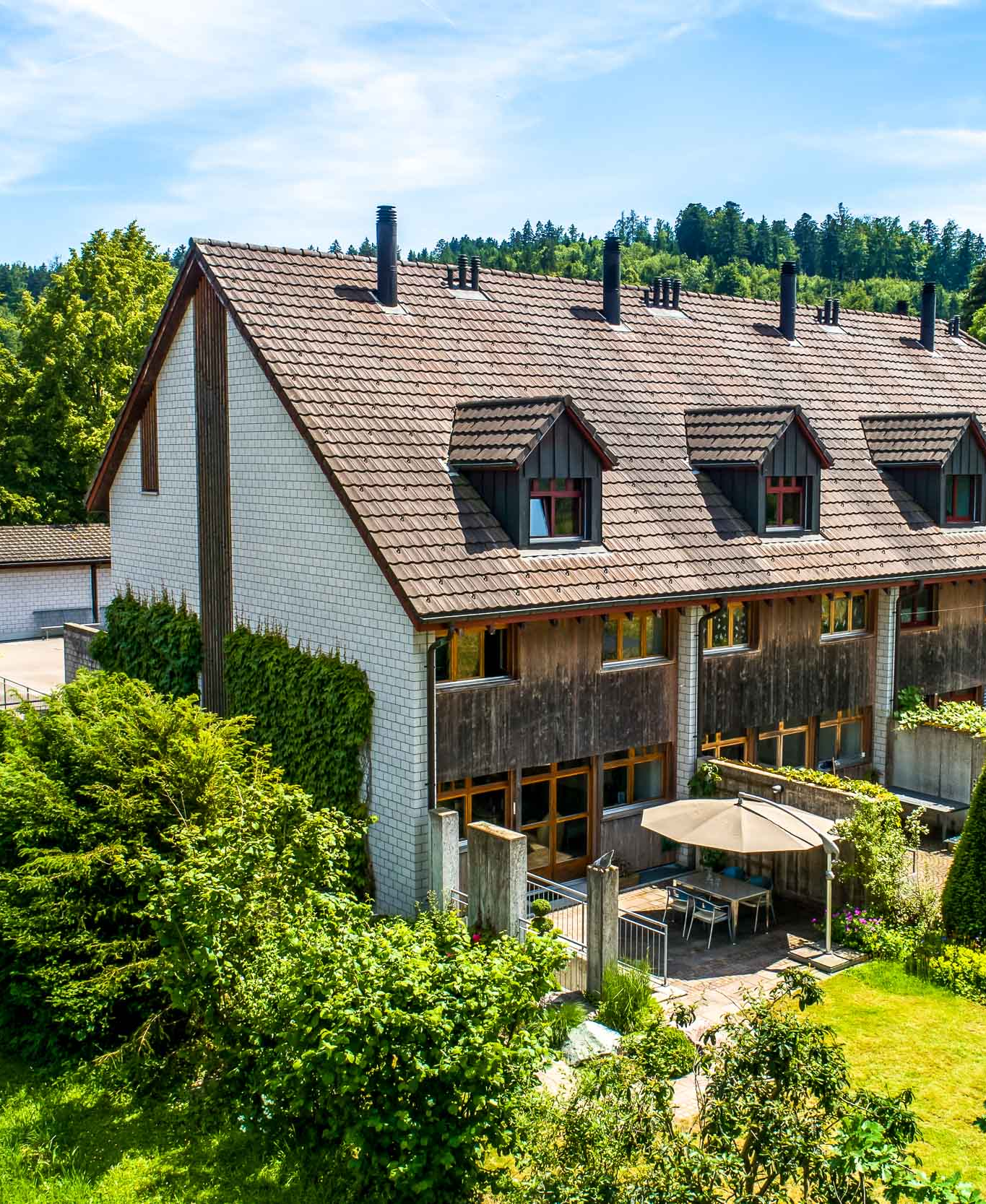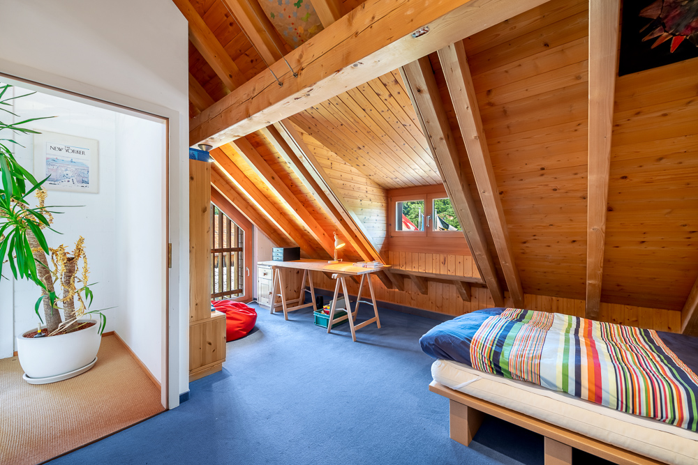 Das Entrée sorgt mit der eingebauten Garderobe dafür, dass alles seinen Platz hat. Die daran anschliessende Küche ist in Topzustand und mit allen Annehmlichkeiten ausgestattet. Das Herzstück jeder Küche, der Herd, besteht aus Induktionskochfeld, spezieller Wok-Herdplatte sowie einem fixen Chromstahl-Dampfabzug. Der Backofen, der separate Dampfgarer und der grosse Kühlschrank mit Gefrierfach komplettieren die Geräteliste. Die in Weiss gehaltene Küchenfront hat zahlreiche Schubladen, die einen komfortablen Zugriff zu den Kochutensilien ermöglichen. Diese Küche ist eine echte Hittnauerin, sie wurde von Lanz Küchen auf Mass angefertigt und teils mit Bulthaup-Elementen abgerundet.